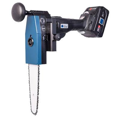 Handy and lightweight cordless plastic tube saw. Ideal for cutting PE and PP plastic tubes with or without foam filling into sections.